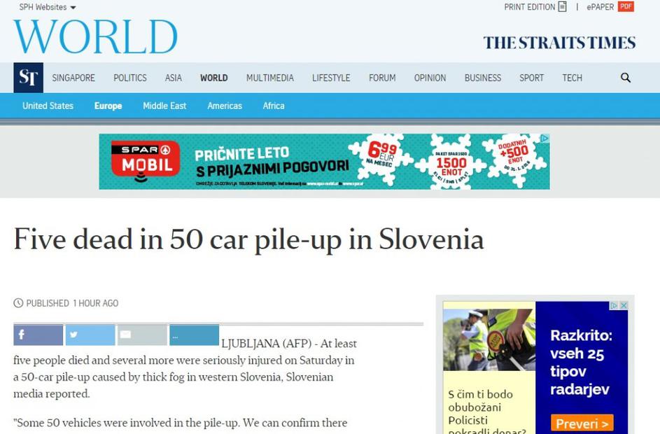 Tuji mediji o prometni nesreči