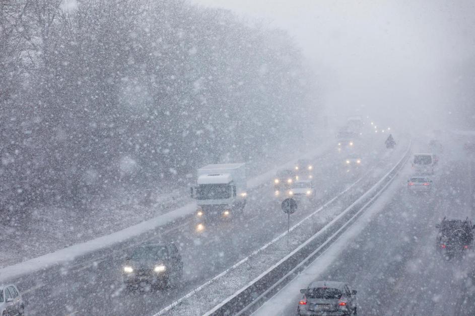Zdrsi tovornih vozil, zaprte ceste. Zapadlo bo še do 35 cm snega.