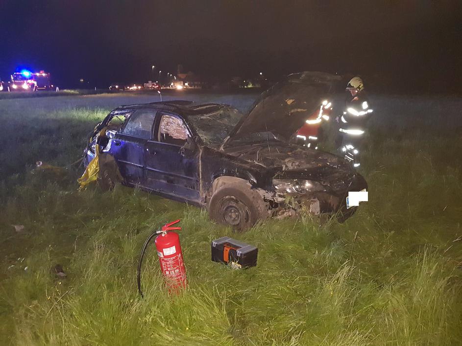Huda nesreča, gasilci in mimoidoči po visoki travi iskali voznika