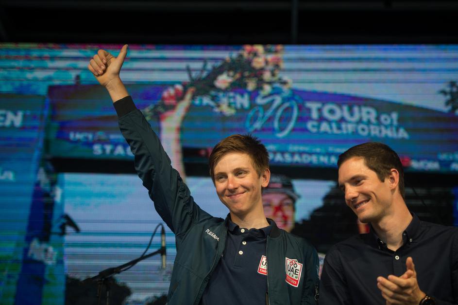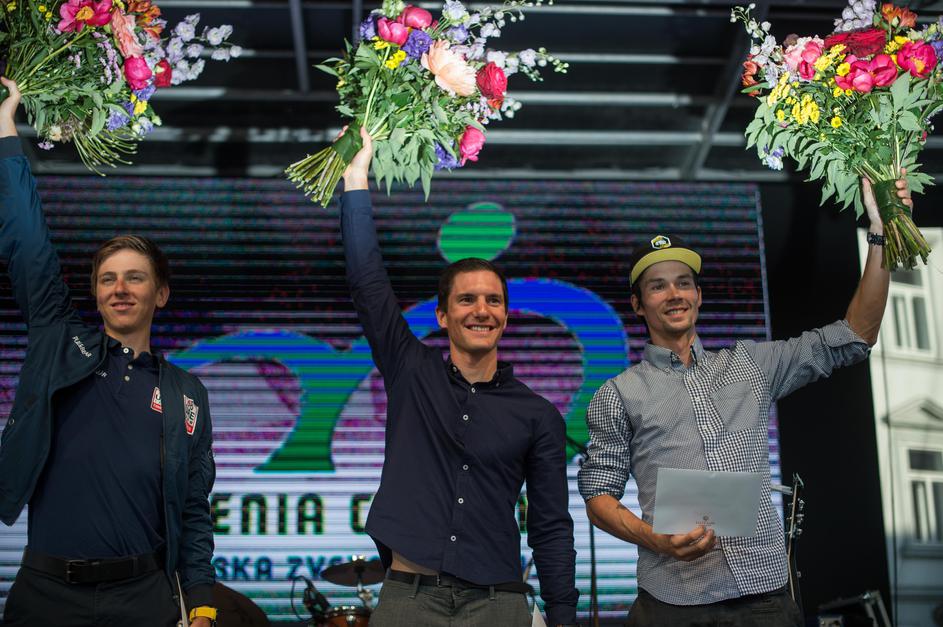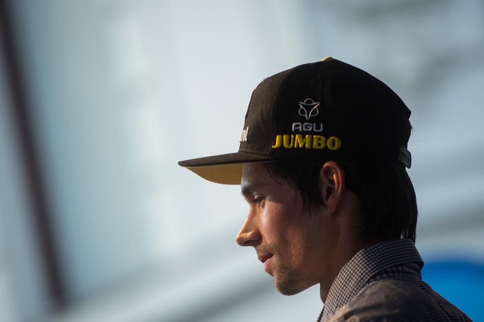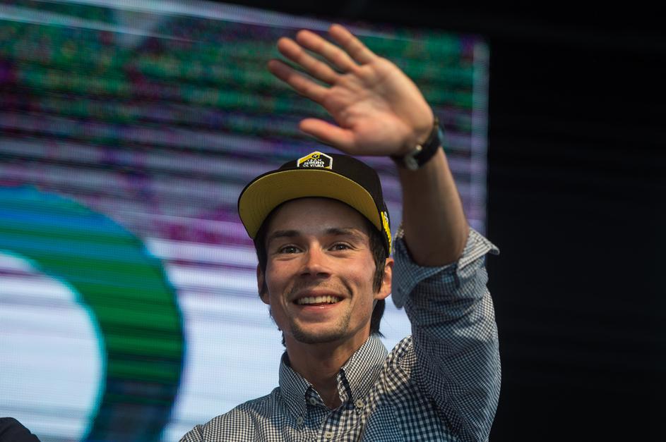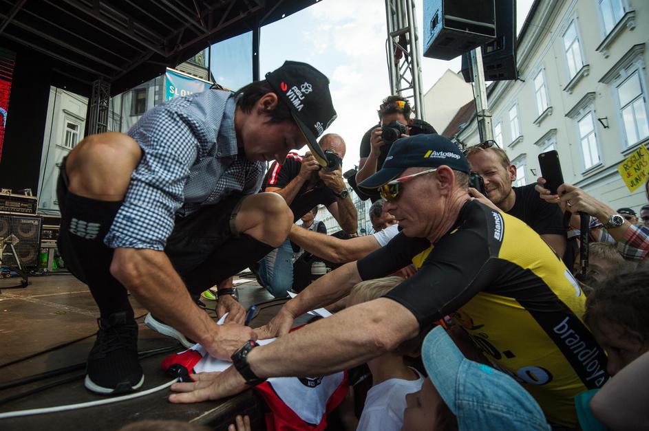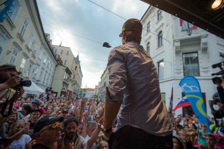 Primož Roglič, Tadej Pogačar in Jan Polanc na sprejemu v Ljubljani.