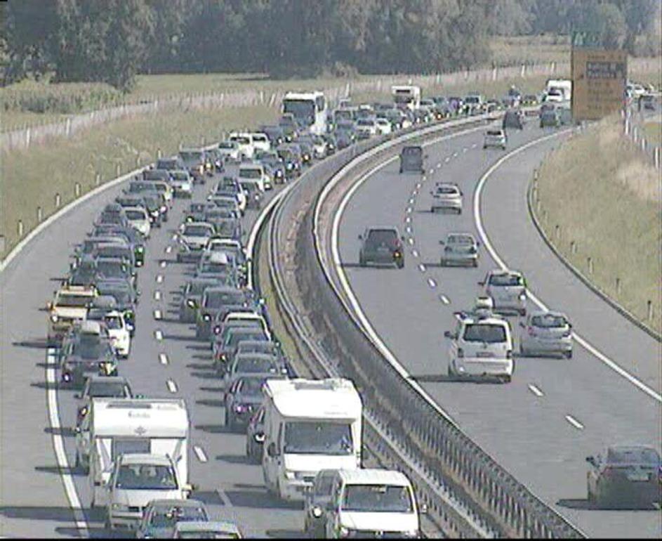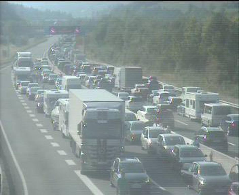 Zastoj na gorenjski avtocesti pred Karavankami PIC Zastoj na gorenjski avtocesti pred Karavankami
