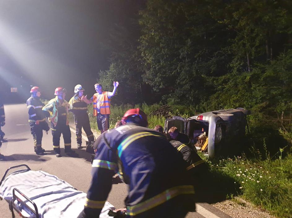 Prometna nesreča pri Rogaški Slatini, avto na boku
