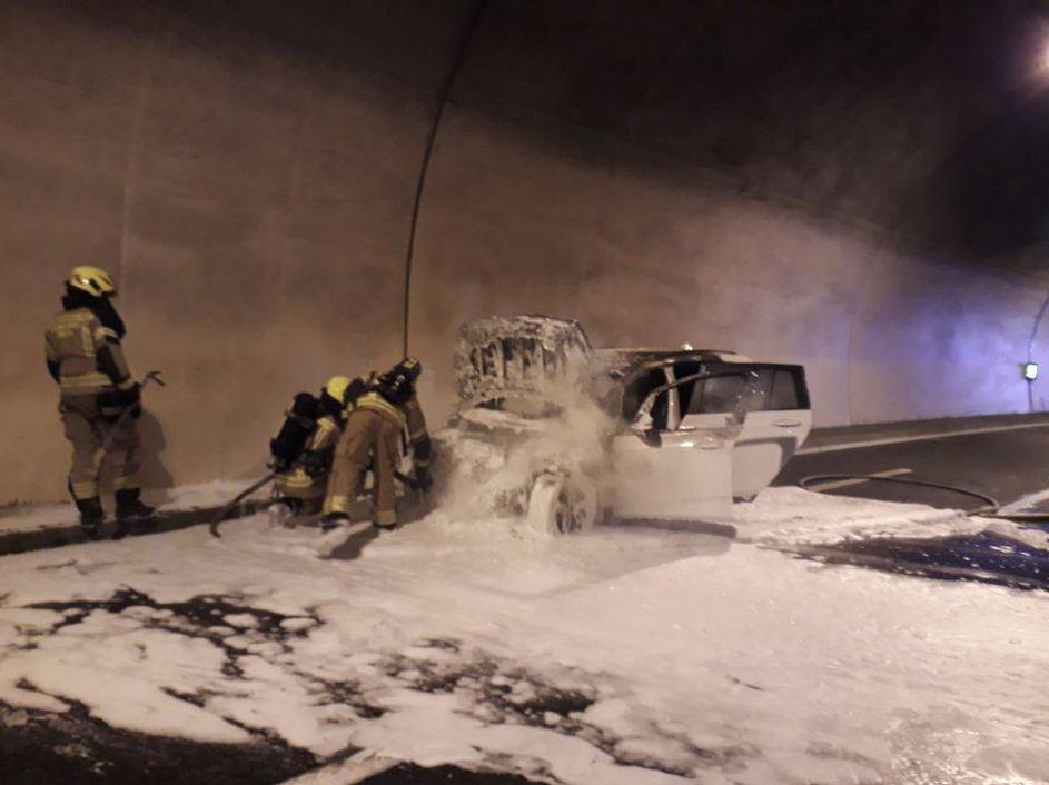Požar avta v predoru Šentvid