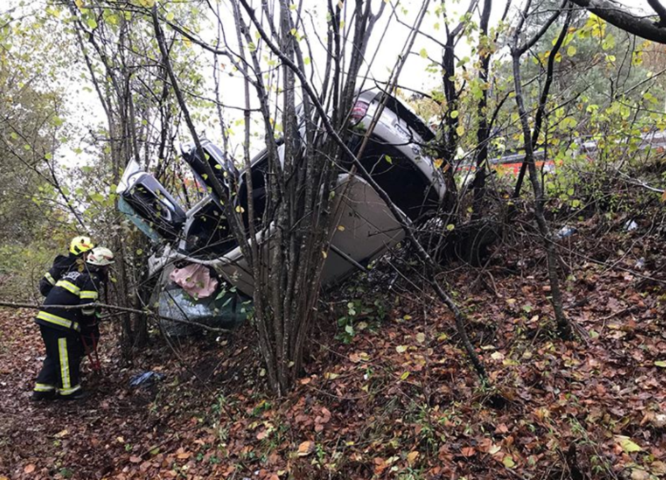 Prometna nesreča, prevrnjen avto pod cesto