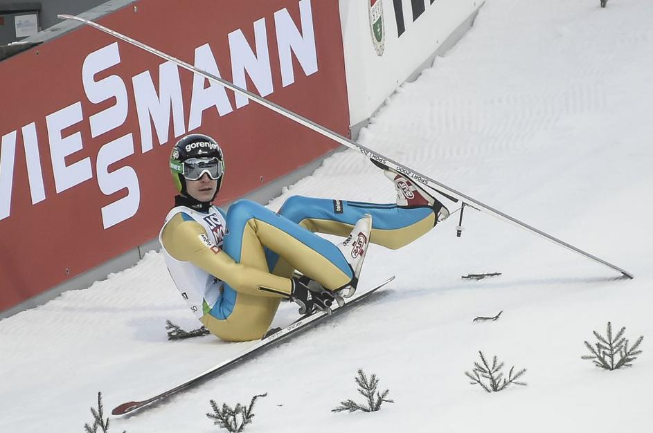 Jurij Tepeš je po prvem skoku pristal v snegu.