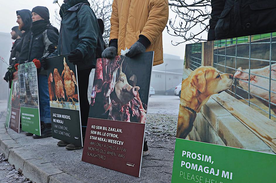 Nov protest veganov z minuto molka za žrtve