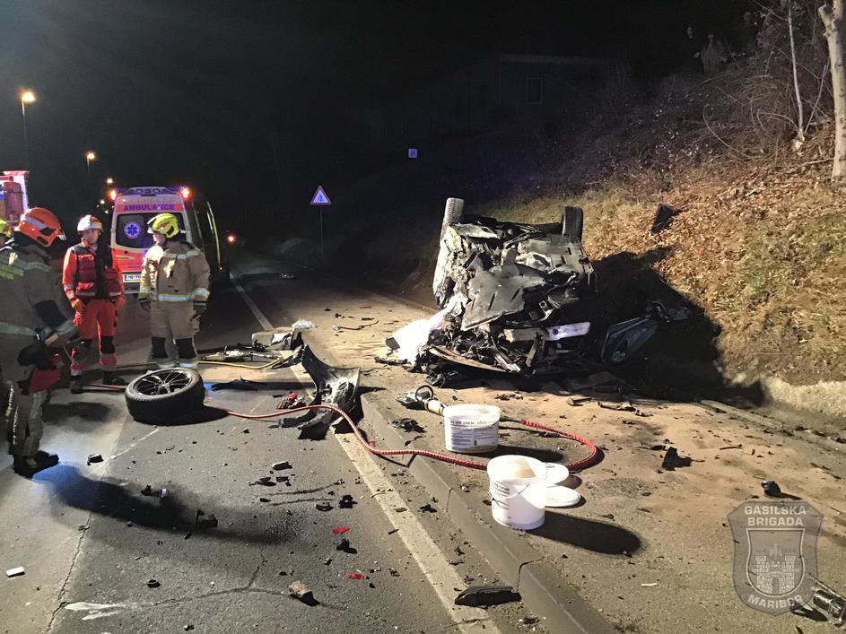 Mladenič umrl v prevrnjenem avtu