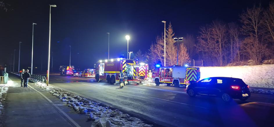 Gasilci Gasilsko reševalne službe Kranj med nocojšnjo intervencijo.