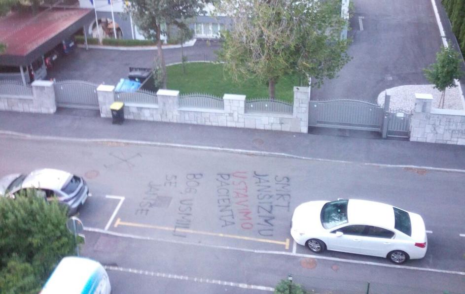 Grafit pred sedežem stranke SDS na Trstenjakovi v Ljubljani