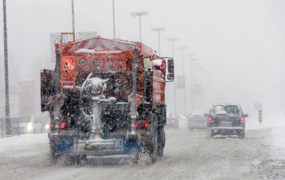 <slovenija> 14.01.2009 sneg, KPL, posipanje ceste, snezne razmere, cesta,