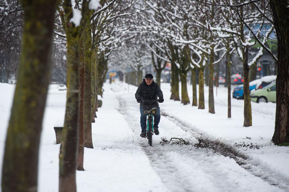 Snežne razmere na cestah in pločnikih v Ljubljani.