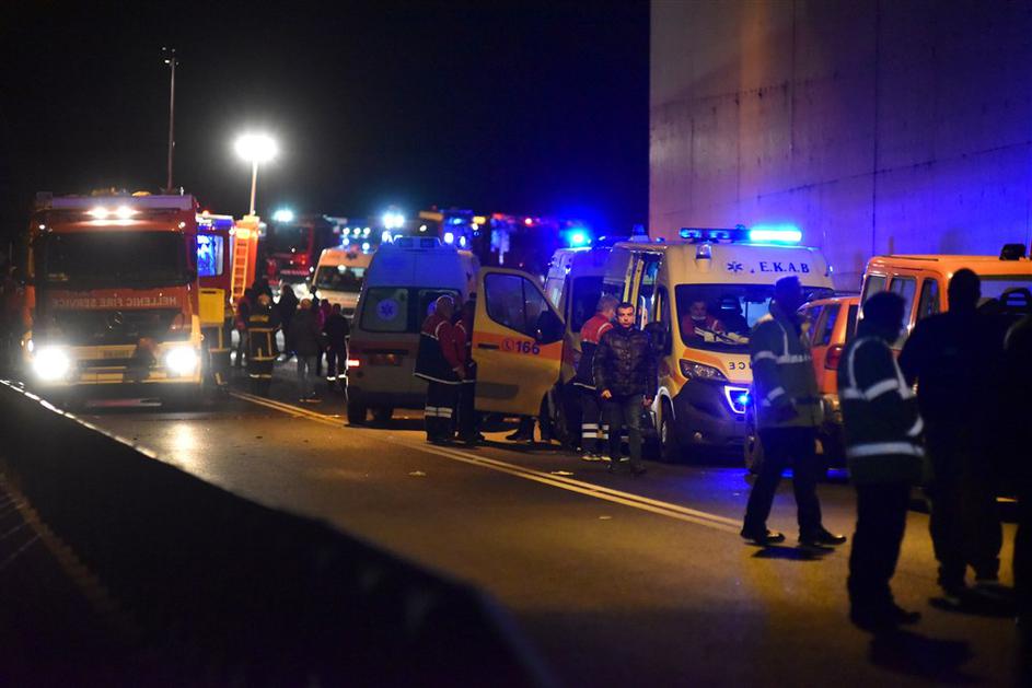reševalci na kraju trčenje potniškega in tovornega vlaka v Grčiji