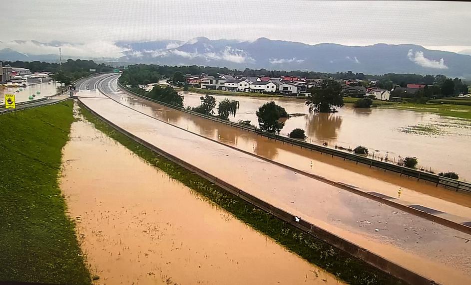 Poplavljena avtocesta med Žalcem in Šentrupertom proti LJ