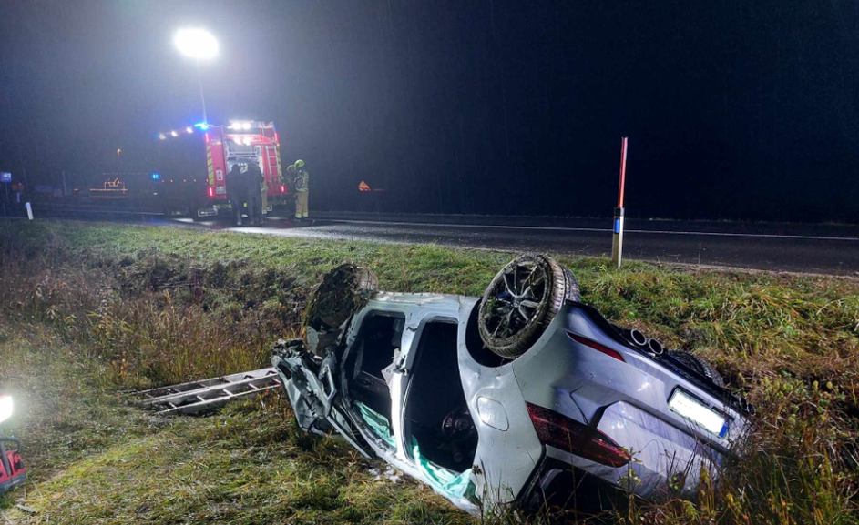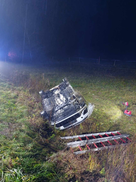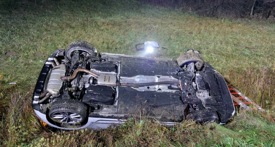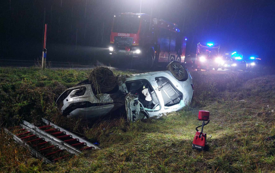 Prometna nesreča, avto v jarku, Zalog pod Sveto Trojico
