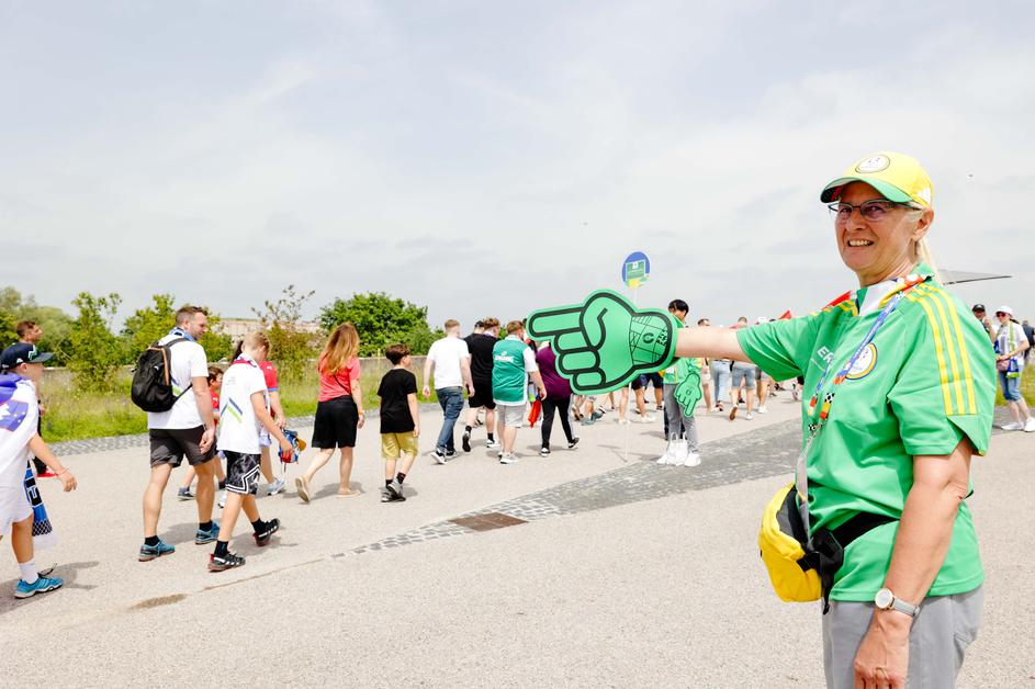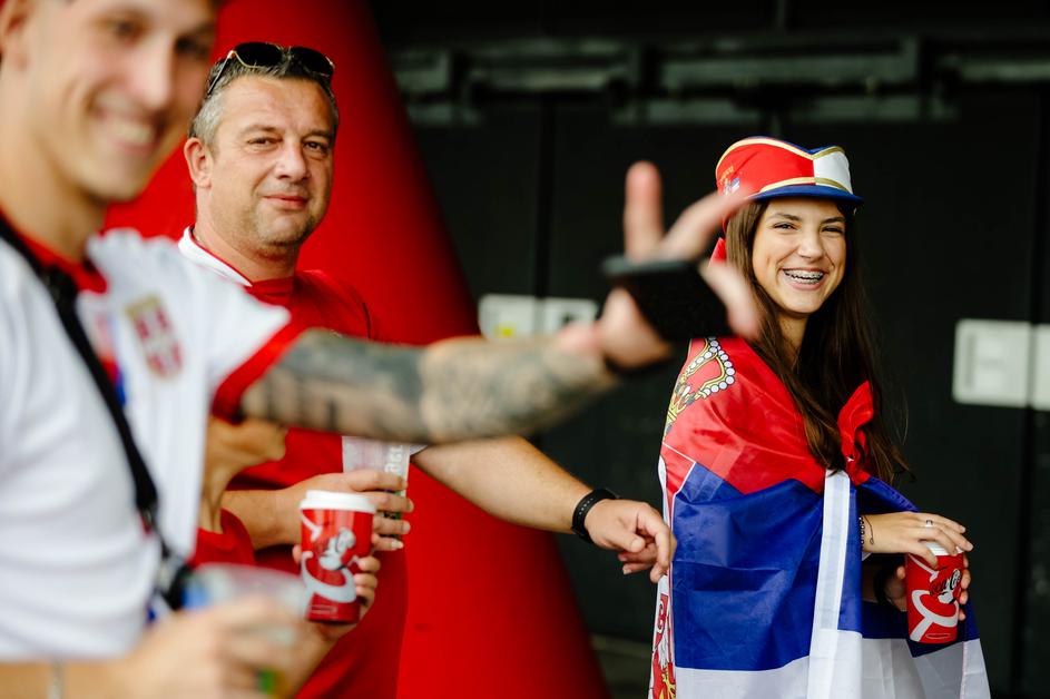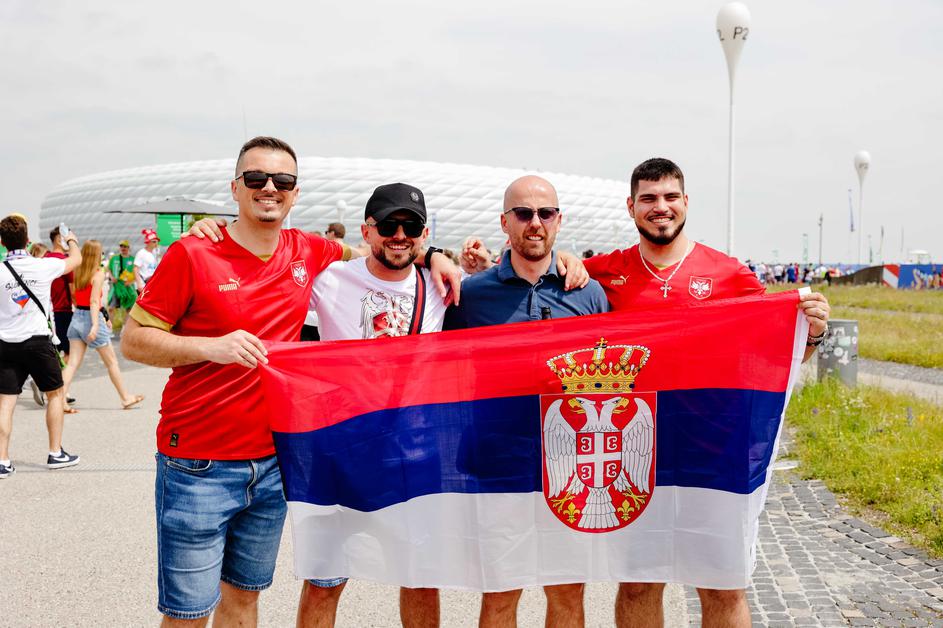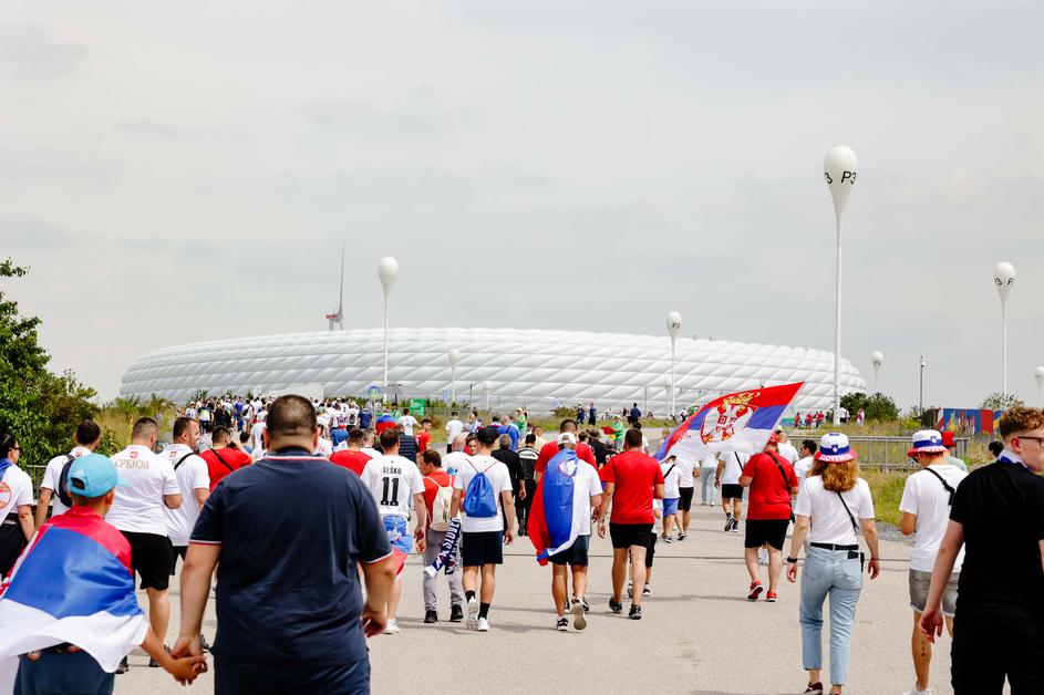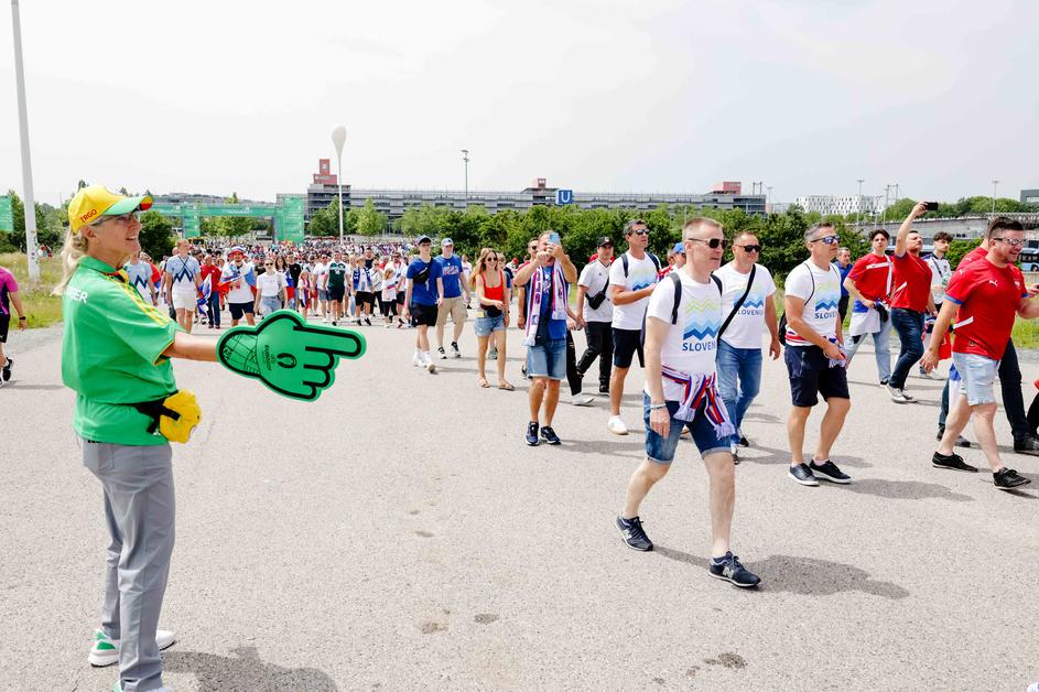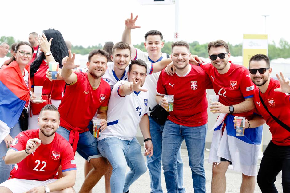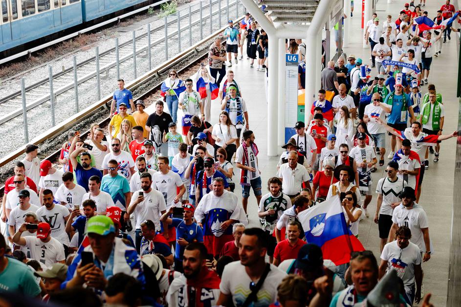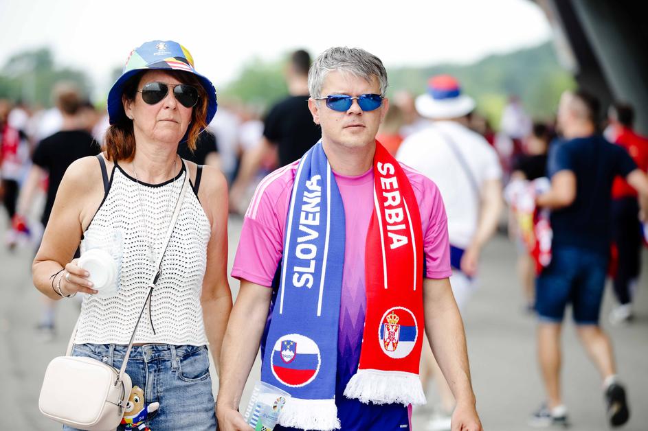 Tako so na Fussball Areno pripotovali slovenski in srbski navijači.