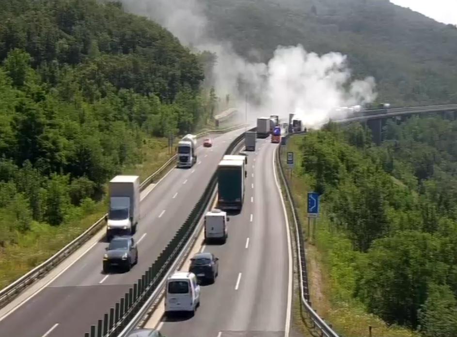 Goreče vozilo na vipavski hitri cesti