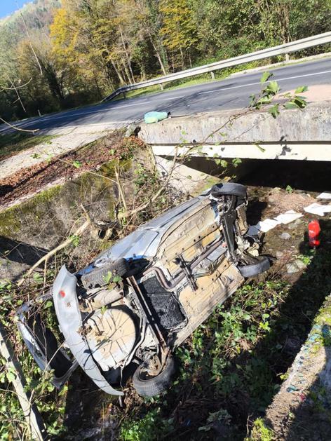 31-letna voznica prebila ograjo in treščila v potok