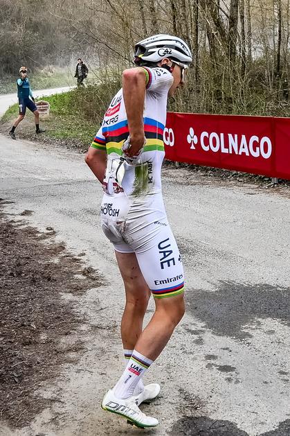 Tadej Pogačar, padec na Strade-Bianche