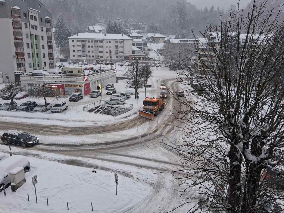 Čiščenje ceste v Trbovljah.