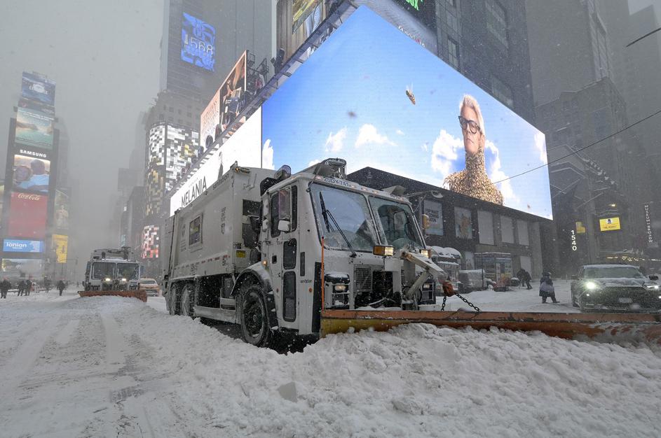 plugi odstranjujejo sneg na Times Squaru v New Yorku