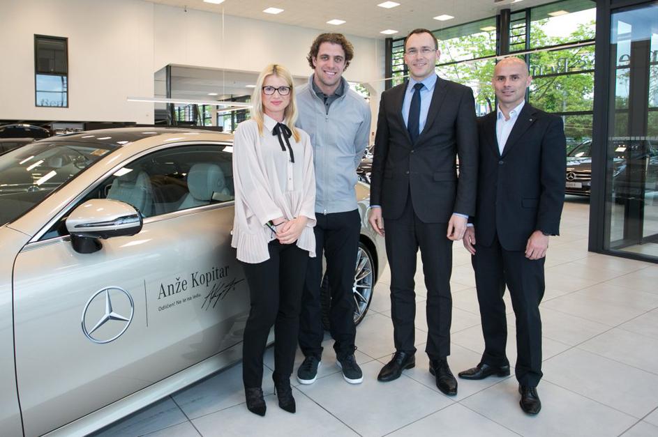 Anže Kopitar je novi ambasador znamke Mercedes-Benz. Sponzorsko vozilo, kupe razreda E, je Anžetu Kopitarju predal direktor podjetja Autocommerce, Rasto Oderlap.