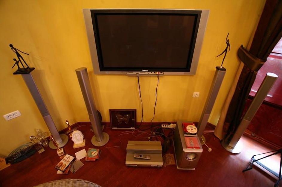 Tudi elektornike v Tošetovi dnevni sobi ne manjka.