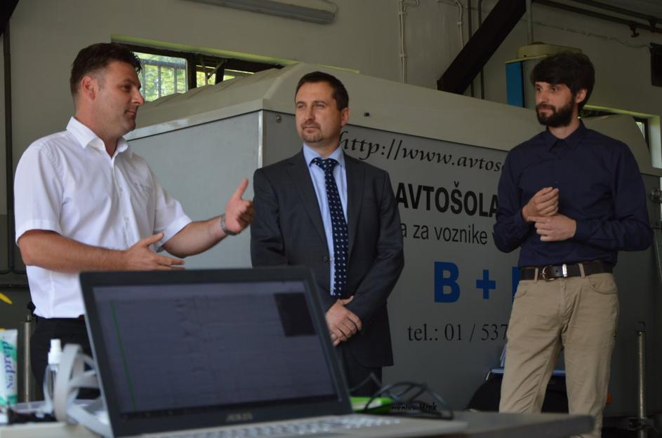 AVP in raziskava vpliva mobilnikovGoran Lapič iz Avtošole Ježica, direktor AVP Igor Velov in produktni direktor Blckb Luka Zevnik. Andrej Leban