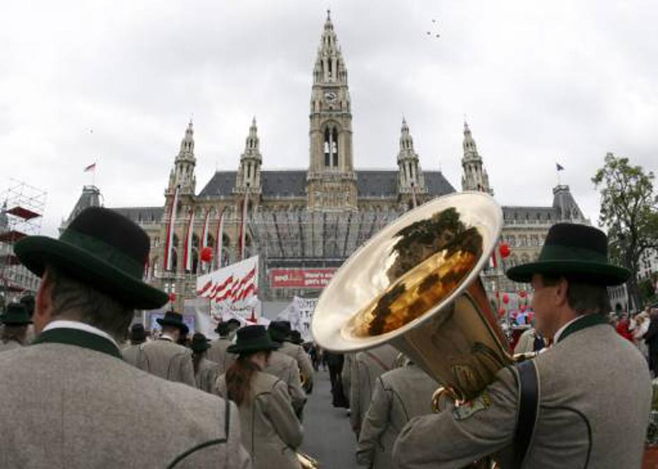 Pihalna godba na shodu avstrijskih socialnih demokratov na Dunaju. Žurnal24