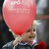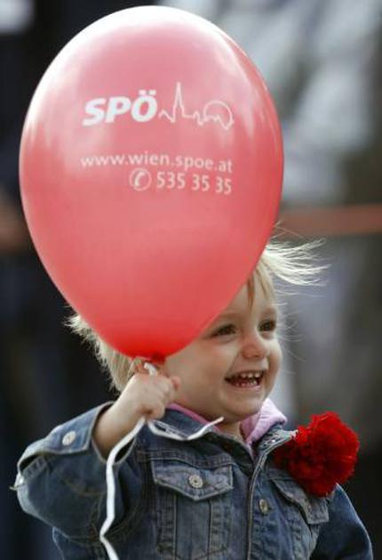 Deček drži v rokah balon s kratico avstrijskih socialnih demokratov. Žurnal24