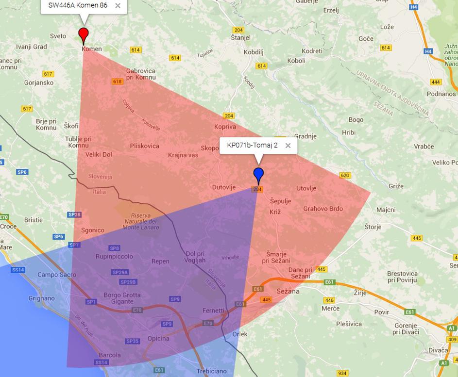 Prikaz usmerjenosti baznih postaj slovenskih mobilnih operaterjev na