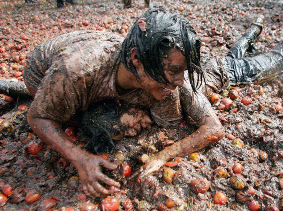 Festival obmetavanja s paradižniki v Kolumbiji.