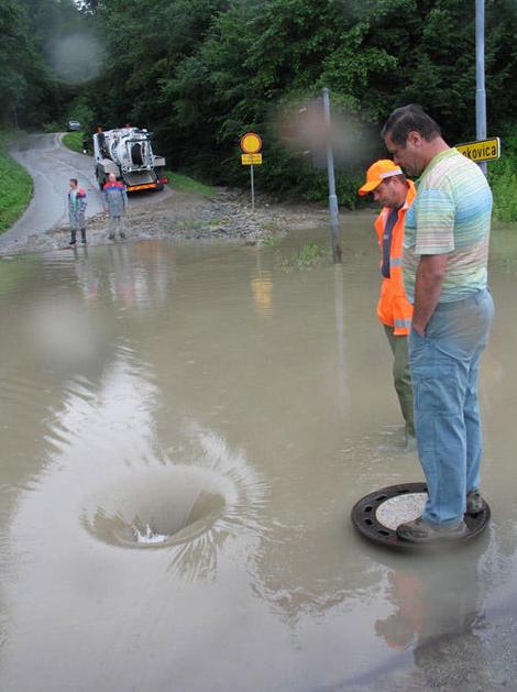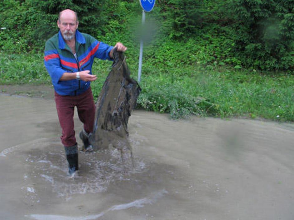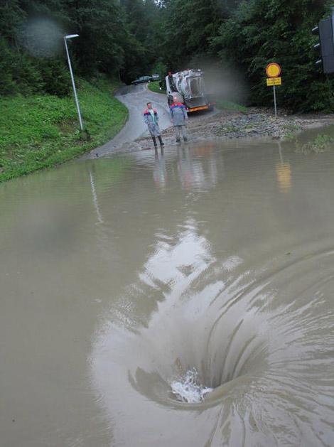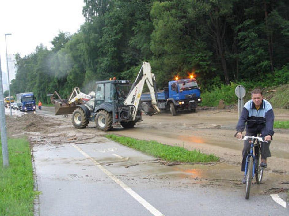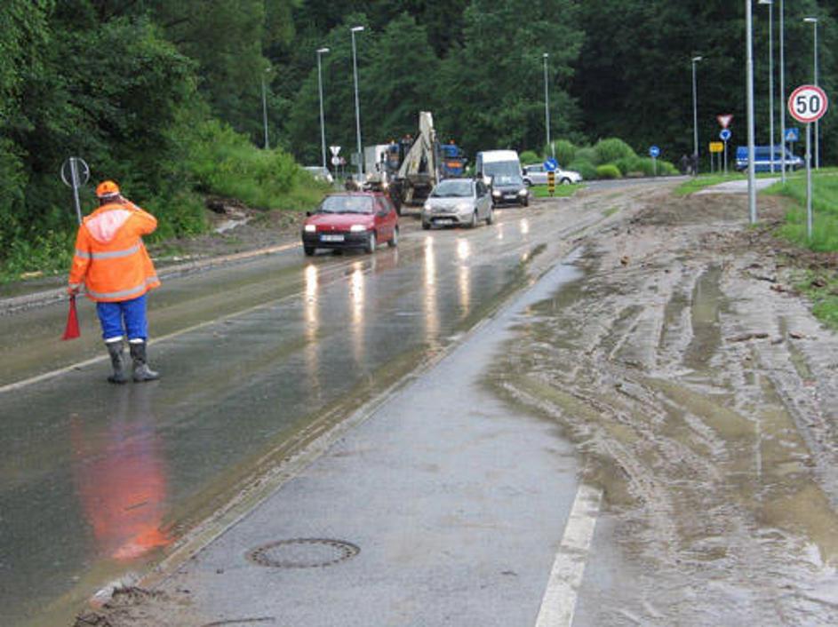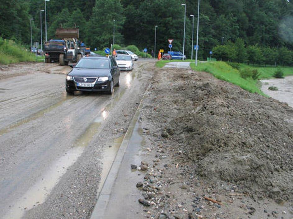 Razdejana cesta med Velenjem in Šoštanjem.