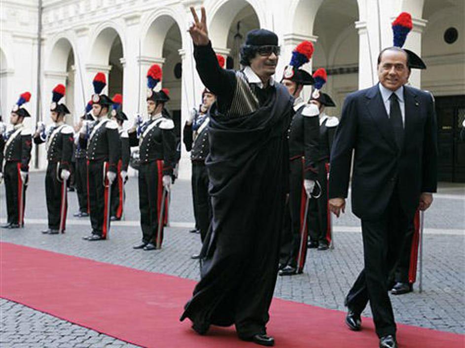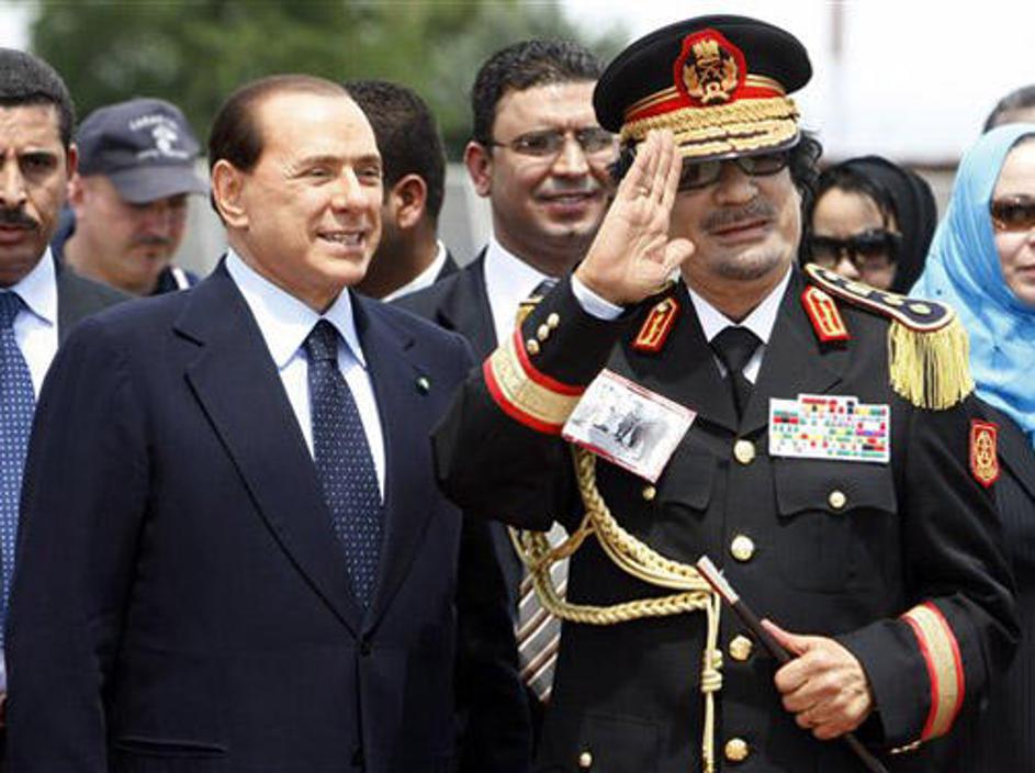 Gadafi na obisku pri Berlusconiju