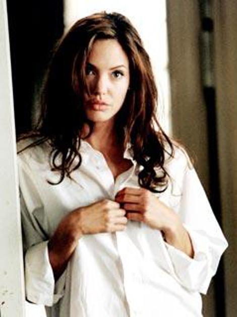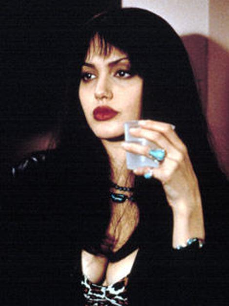 Bled obraz, rdeče ustnice in črni lasje. Angelina v filmu Pushing Tin.