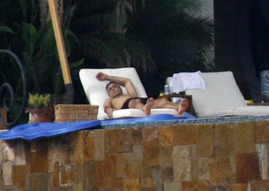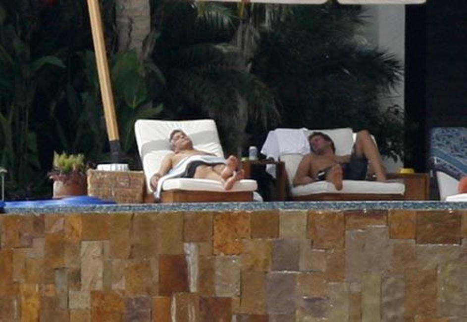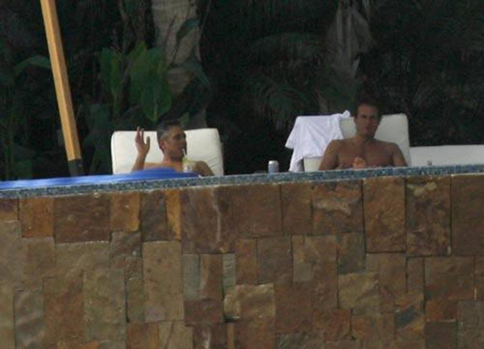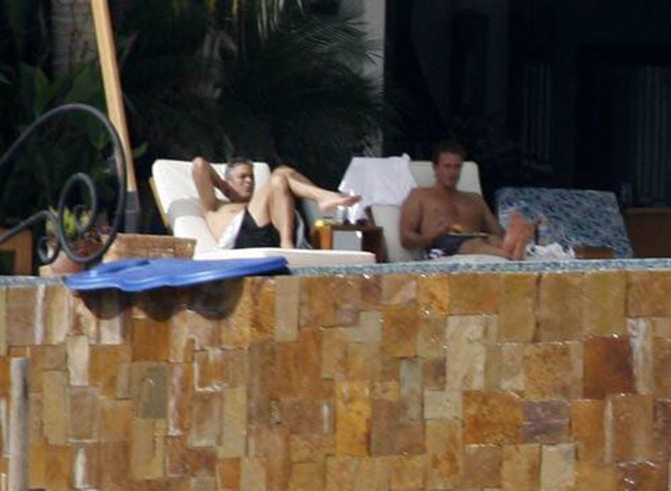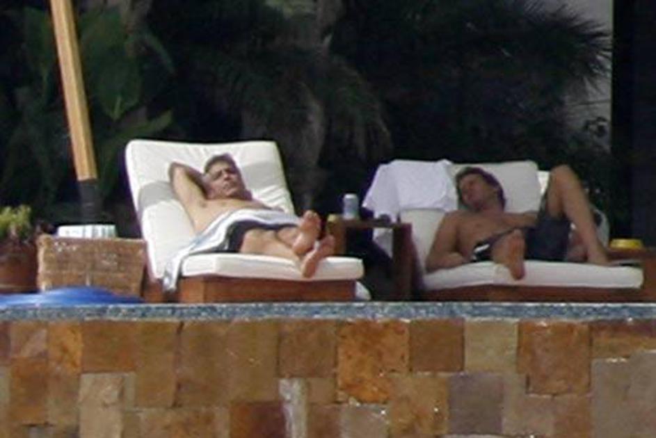 George Clooney se sonči v moški družbi.