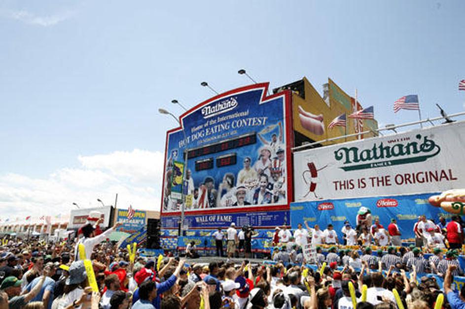 Na Coney Islandu so tekmovali, kdo v 10 minutah poje več hrenovk (Foto: Reuters).Na Coney Islandu so