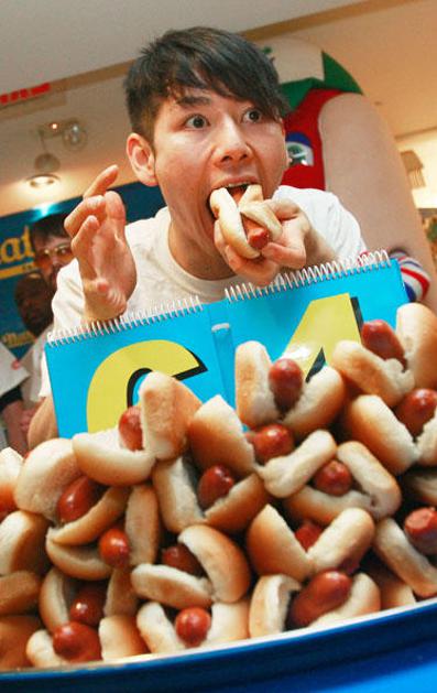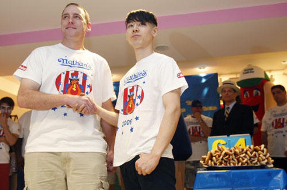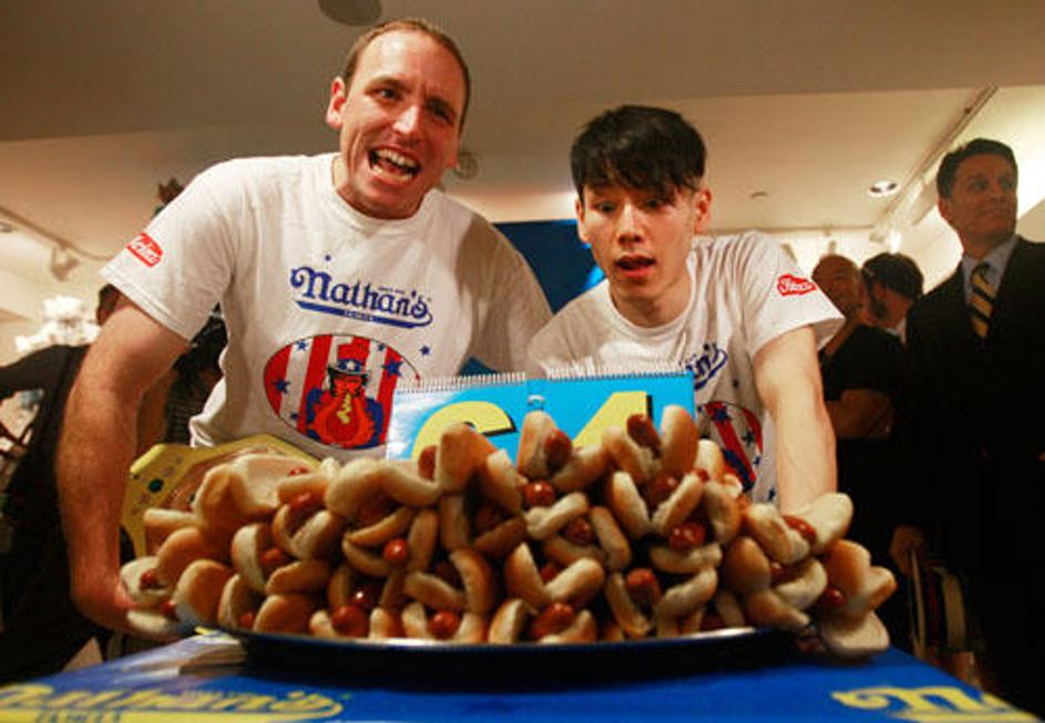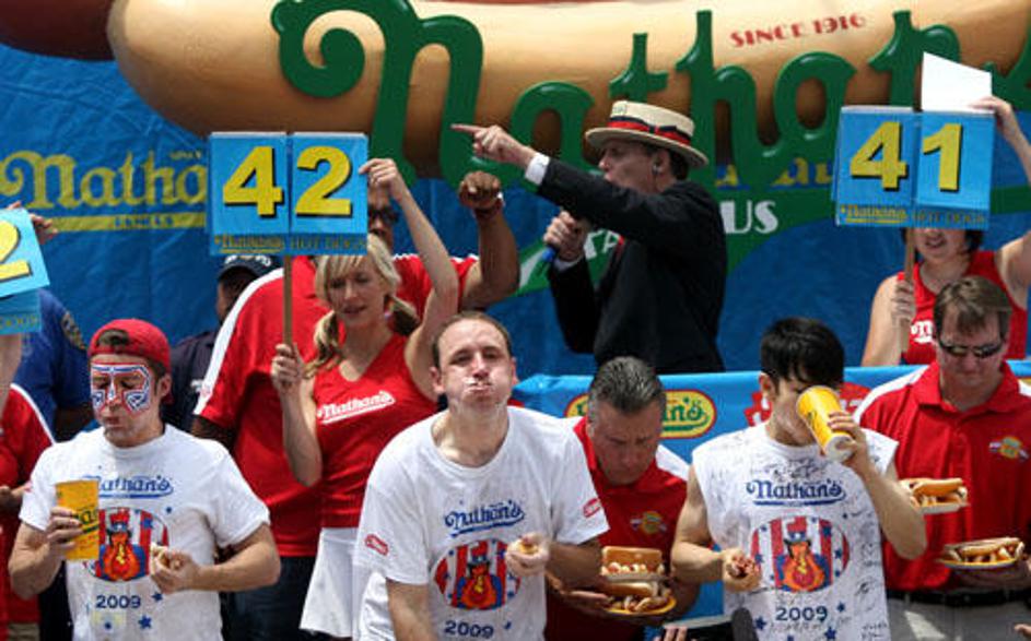 Na Coney Islandu so tekmovali, kdo v 10 minutah poje več hrenovk (Foto: Reuters).