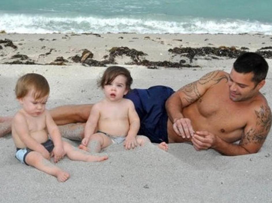 Ricky se s sinovoma igra na plaži