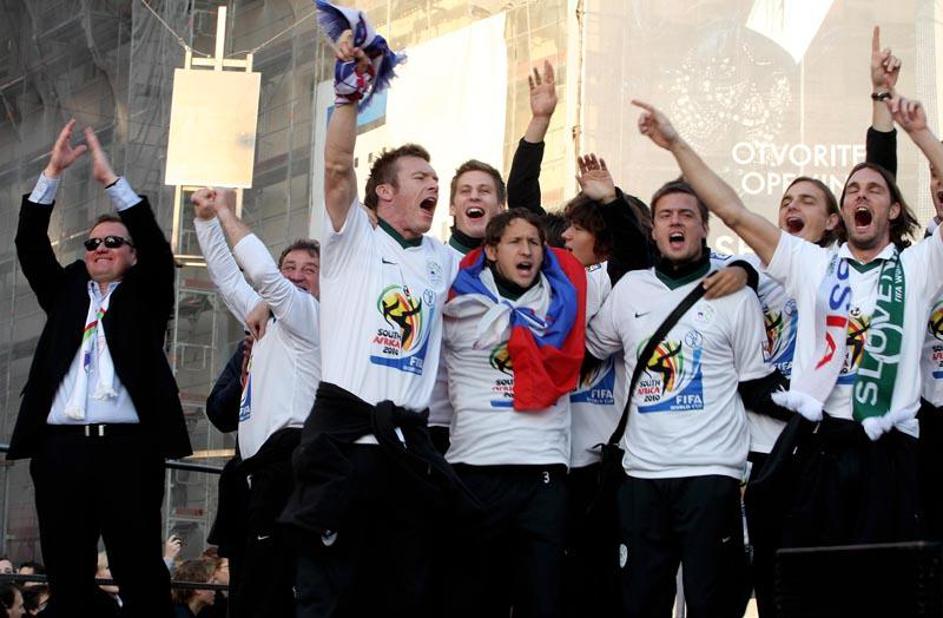 Slovenija gre na SP 2010 Sprejem Ljubljana Prešernov trg predsednik Turk župan J