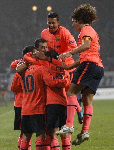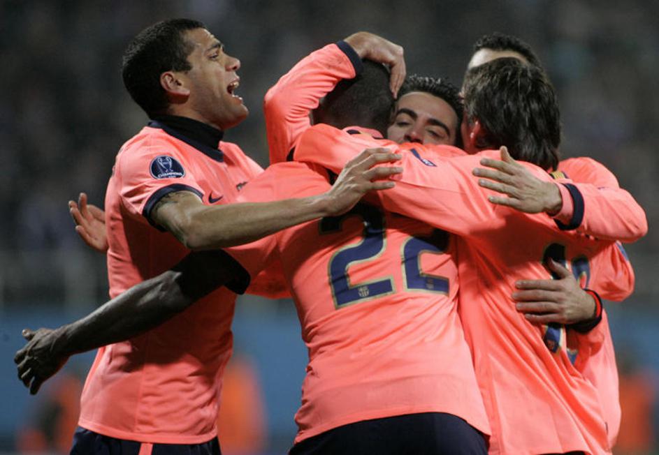 Liga prvakov Barcelona Xavi Hernandez Daniel Alves Eric Abidal Dinamo Kijev