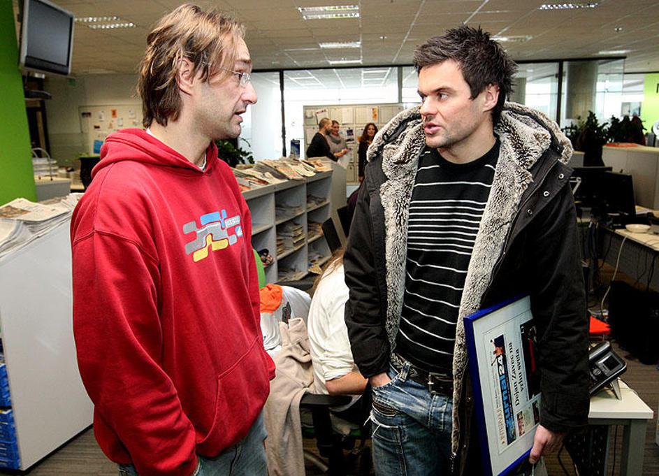 Dejan in nasmejani grafični oblikovalec Rastko Milivojevič.