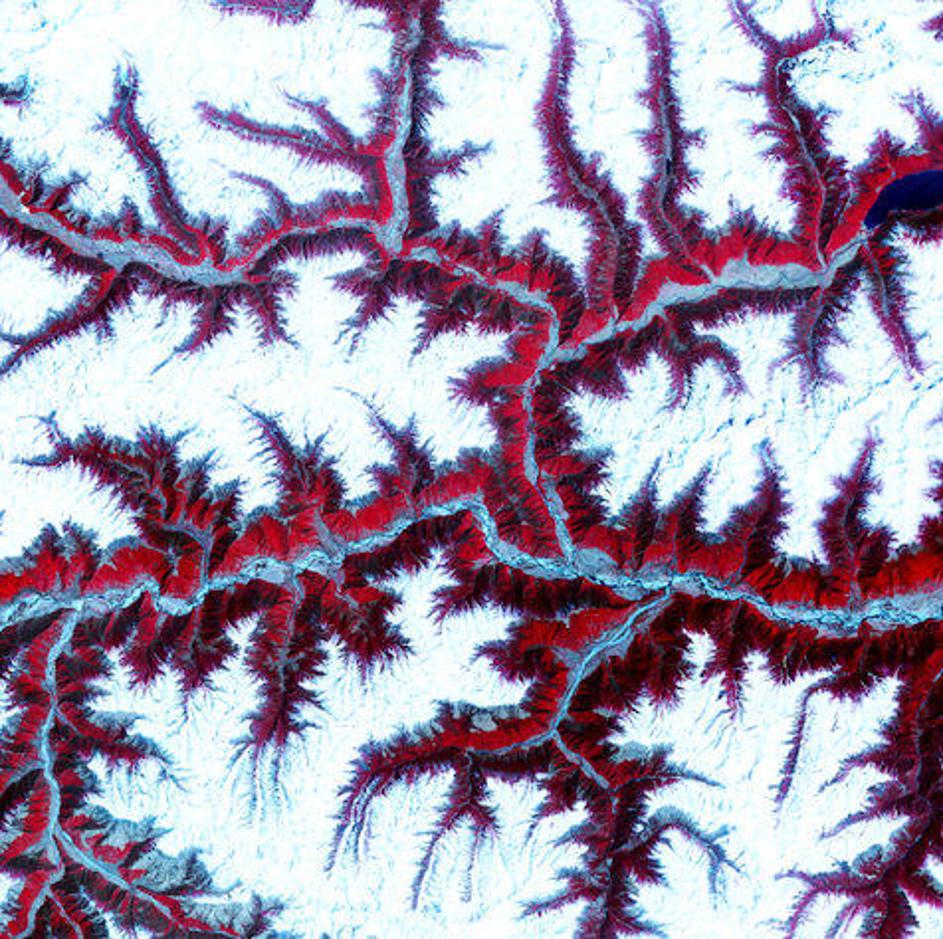 Zasneženi vrhovi vzhodne Himalaje.