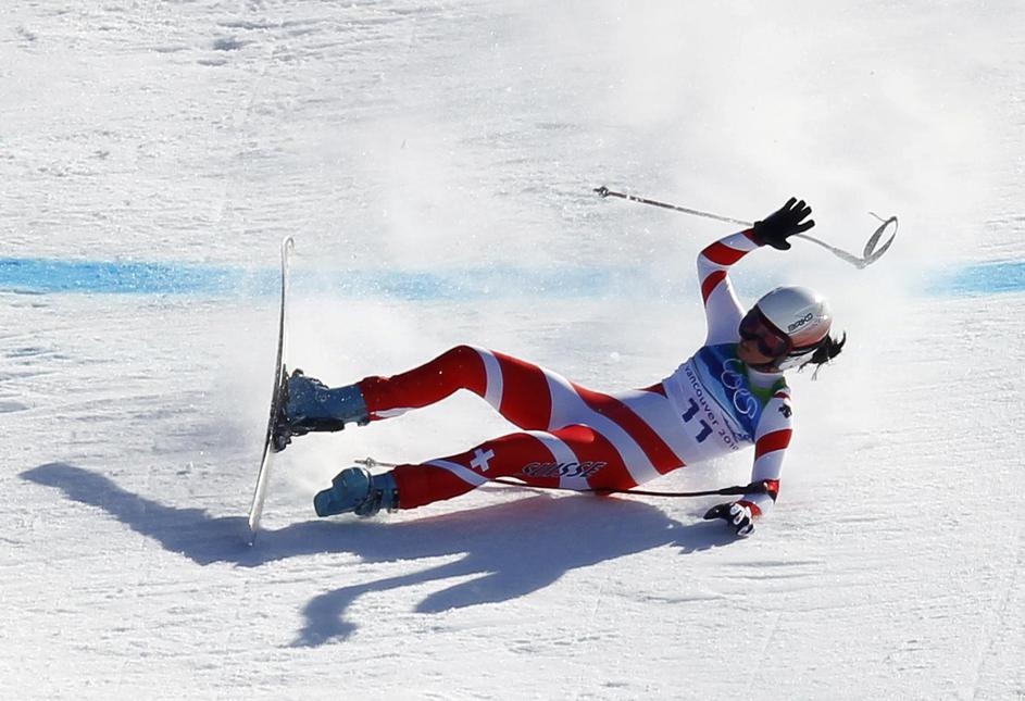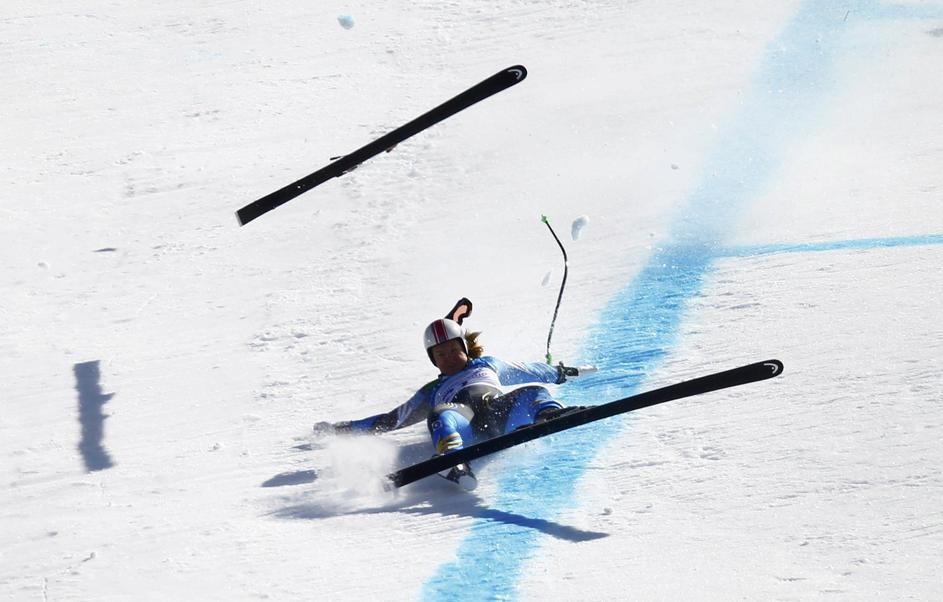 Olimpijski smuk deklet je zaznamovalo večje število nevarnih padcev. (Foto: Reut Žurnal24 Olimpijski smuk deklet je zaznamovalo večje število nevarnih padcev. (Foto: Reut
