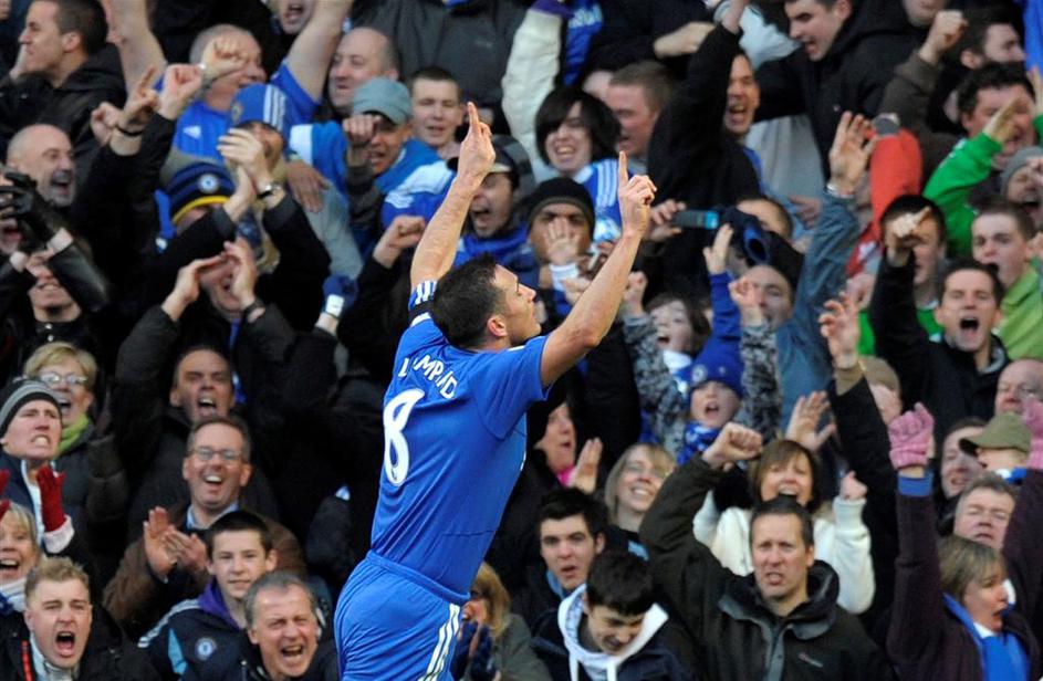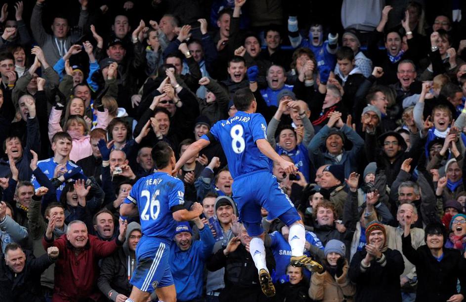 John Terry je po golu ponosno kazal kapetanski trak in poljubljal Chelseajev grb.