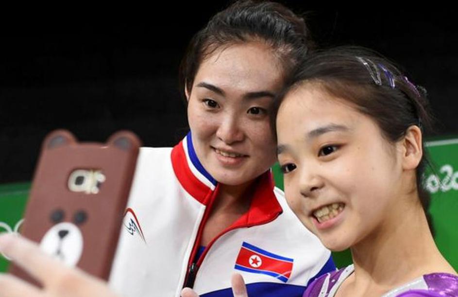Dogodki Rio 2016Lee Eun-ju (desno) iz Južne koreje in Hong Un-jong iz Severne Koreje sta za trenutek pozabili na nesoglasja med državami. Twitter