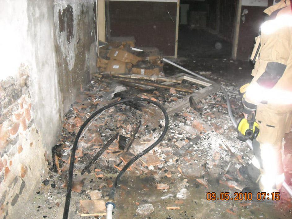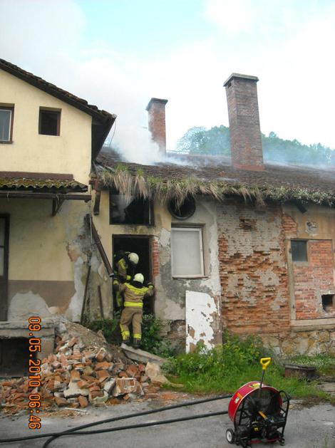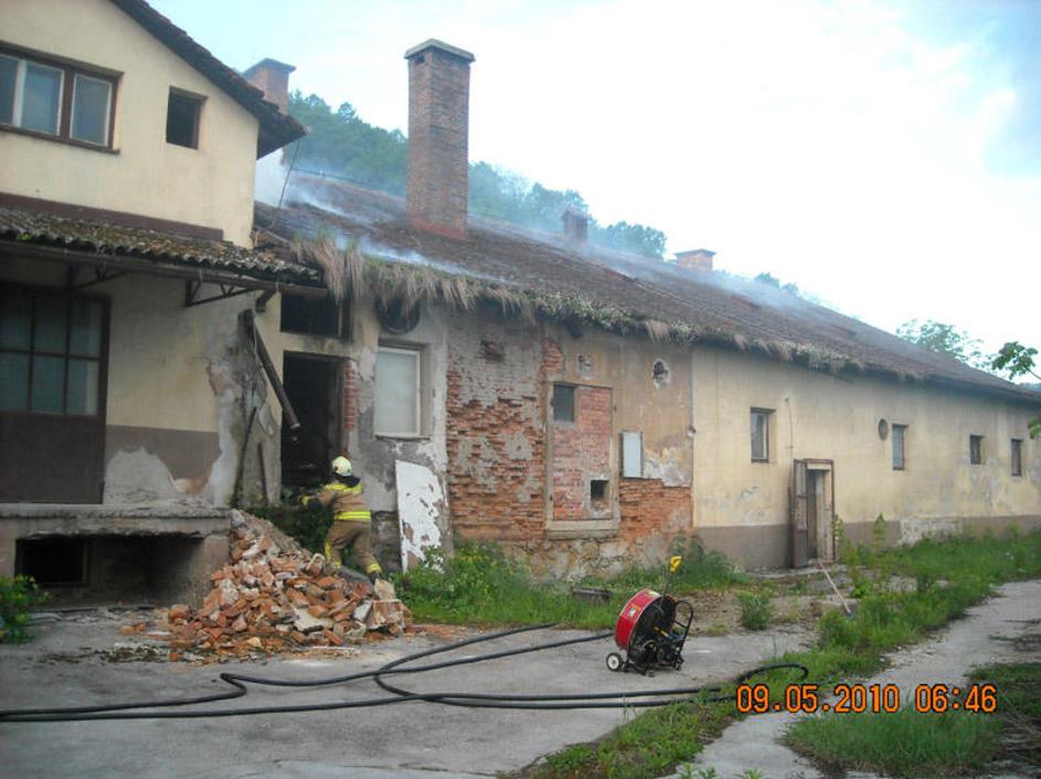 Požar se je iz podstrešja širil v pritličje ter na strešno konstrukcijo. V pritličju je skladišče z