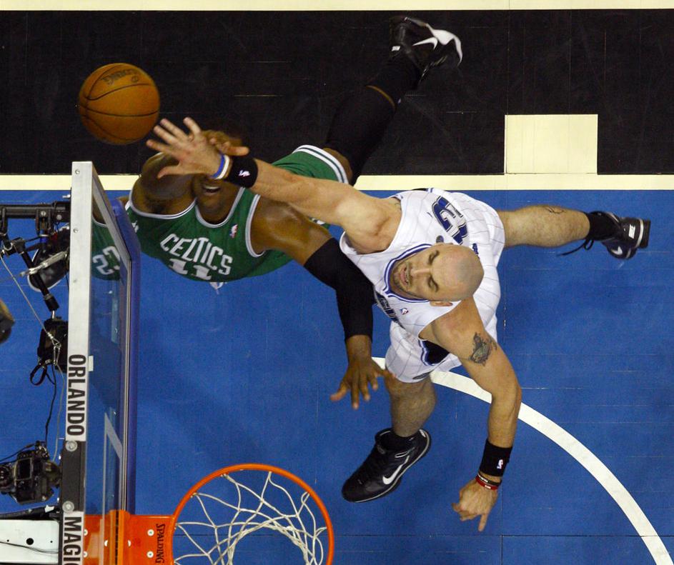 NBA finale Vzhod druga tekma Magic Celtics Marcin Gortat in Glen Davis