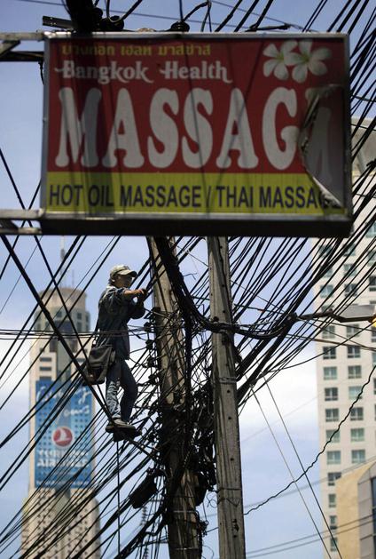 Varnostne sile odstranjujejo zapore cest in bodeče žice; na sliko delavec, ki popravlja električno r