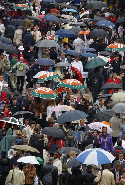 Dežnik je danes na igriščih Roland Garrosa zelo priporočljiv.