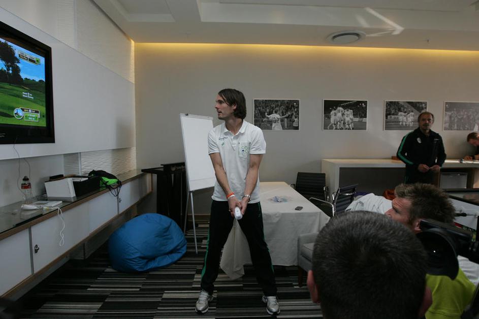 Marko Šuler se je v hotelu preizkusil v igranju golfa.